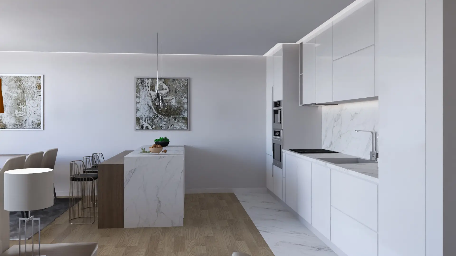 Cocinas equipadas con electrodomésticos.