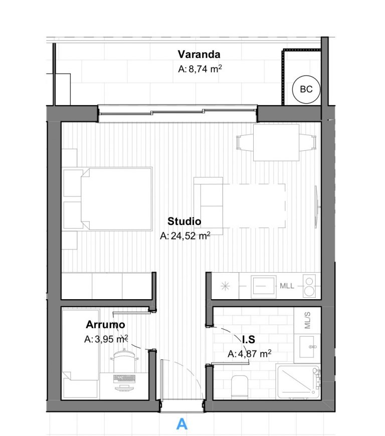 Área Bruta de Construção: 39,4 m²