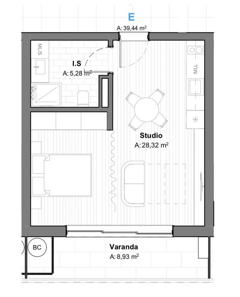 Área Bruta de Construção: 39,4 m²